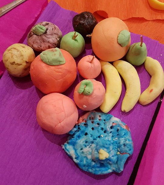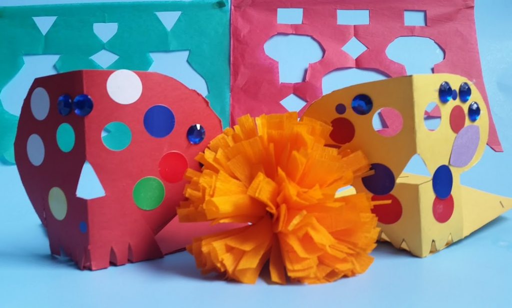 The activity begins with an explanation of this Mexican tradition. Later, the children will create a cardboard skull with the principle of symmetry, which they will decorate in the traditional Mexican way. They will also make paper flowers, sugary fruits, a small frame to stick a photo, and papel picado (cut paper). Children can take their small altar home or create a larger one with the group.